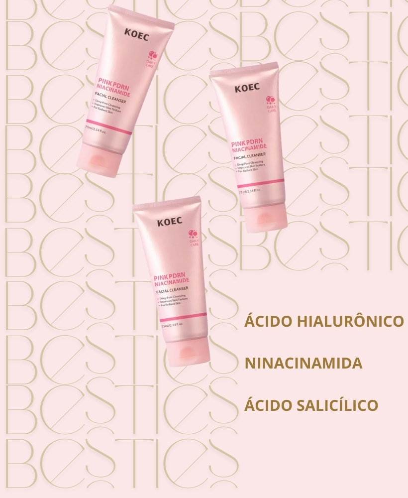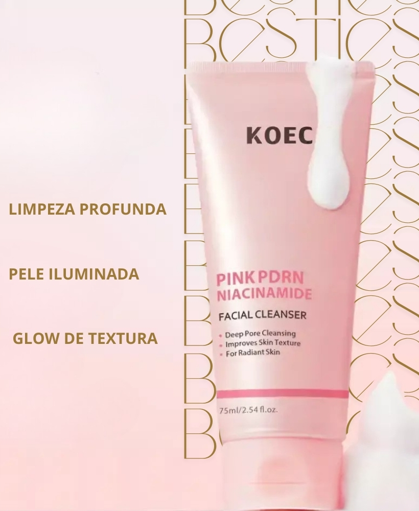 Com PDRN de uso cosmético e uma base cremosa delicada, o Pink PDRN Cleanser da KOEC foi desenvolvido para limpar a pele sem agredir, oferecendo uma experiência suave e eficiente para uso diário, tanto pela manhã quanto à noite.